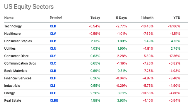 事实上,公用事业和消费必需品等其他防御性板块今年迄今实际上略有上涨,成为仅有的上涨板块。